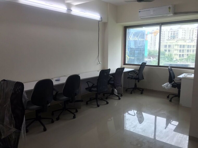 This semi-furnished office space on the fifth floor in Malad West, Mumbai, presents a professional environment with excellent road visibility.