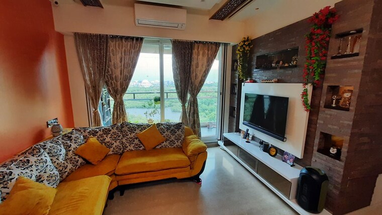 This furnished 3.5-bedroom, 4-bathroom apartment in Seawoods, Navi Mumbai, offers a luxurious rental experience with a view of the water from its balcony.