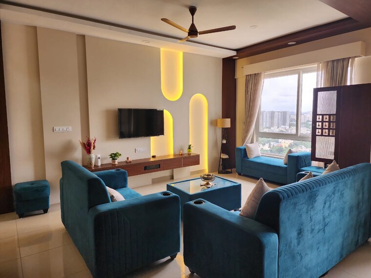 This furnished 3.5 bedroom, 3 bathroom apartment on the 19th floor of G Corp The Icon in Thanisandra Main Road offers a generous 2050 square feet of living space with a lovely garden view.