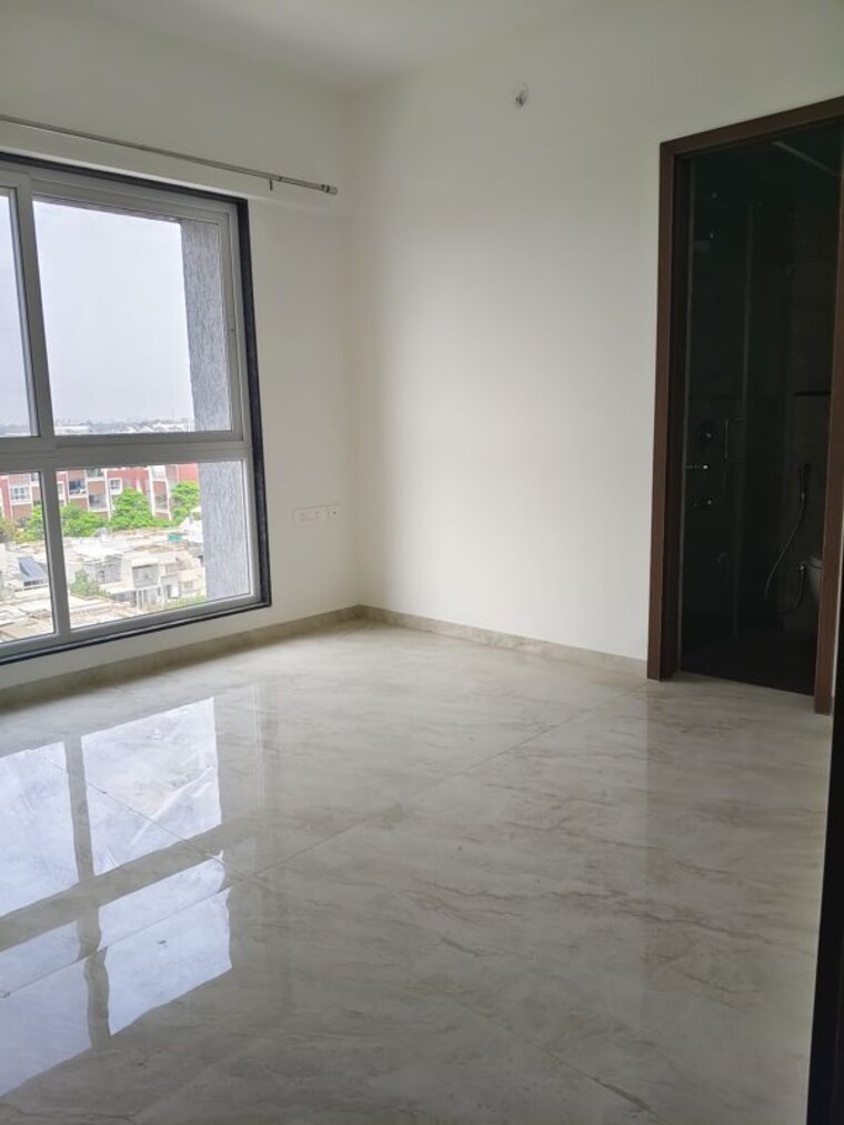 This 1129 Square Feet, three-bedroom, three-bathroom apartment in Shubh Nirvana, Viman Nagar, Pune, is available for rent at 58 thousand per month and offers a pleasant road view from its sixth-floor position within a secure gated society.