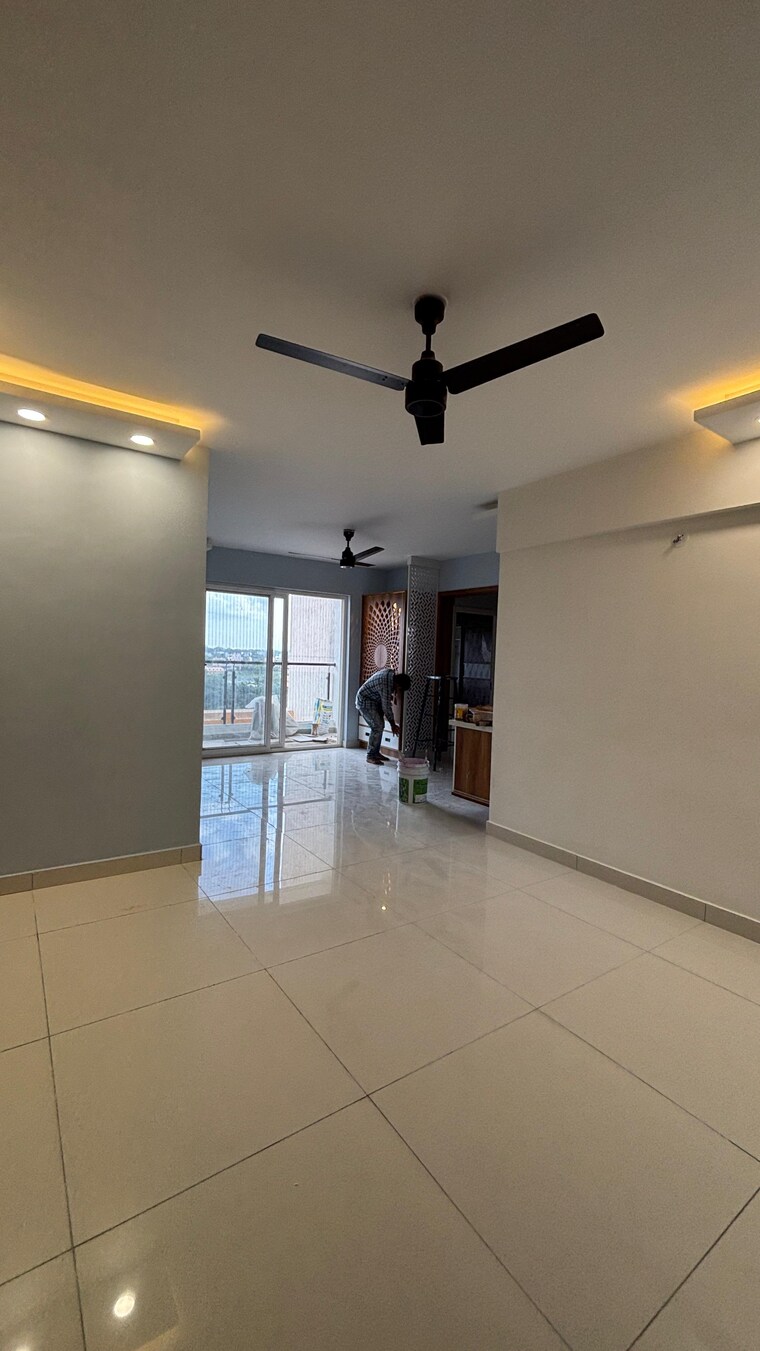 Here is a spacious semi-furnished three-bedroom, three-bathroom apartment available for rent at 37 thousand per month in Bangalore Hunasamaranahalli area, within the Mahaveer Celesse project.
