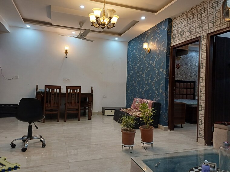 A comfortable and furnished 3-bedroom apartment in Zirakpur Aura Homes awaits your family, offering a delightful garden view from its balcony and priced at 30,000 per month.