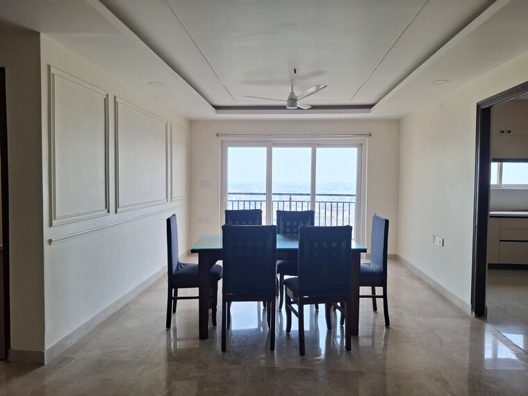 This 2100 square foot, three-bedroom, three-bathroom apartment in Hyderabad Shaikpet locality offers a pleasant garden view from its 10th-floor position within the 23-story Aditya Empress Towers.