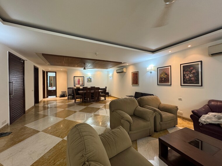 Your next home could be this beautifully furnished 3-bedroom, 3-bathroom builder floor in Delhi esteemed Defence Colony, offering a comfortable 2925 square feet of living space with a peaceful community view.