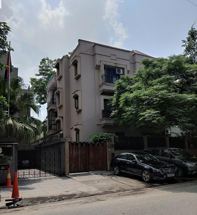 Consider a refined semi-furnished 4-bedroom, 4-bathroom builder floor in Delhi peaceful Shanti Niketan neighborhood, available for rent at 2.5 lac.