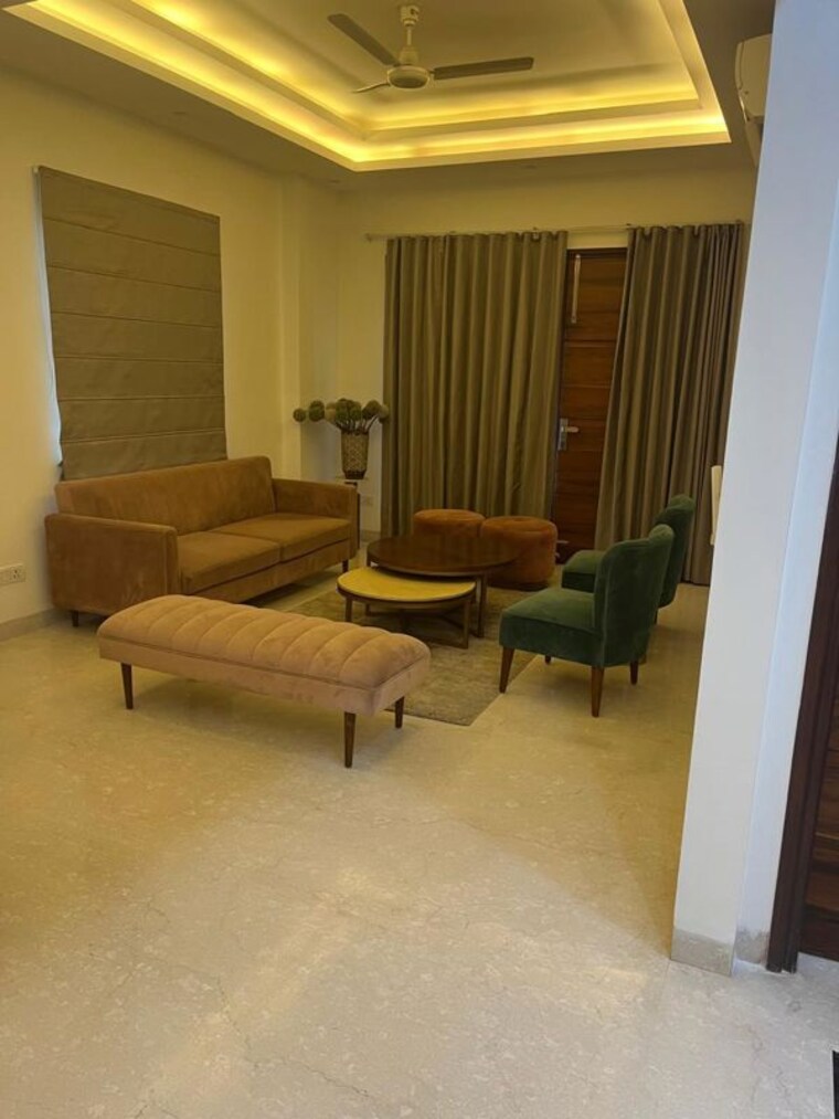 This furnished four-bedroom builder floor in Unitech South City 1, Gurgaon, offers a generous 3200 square feet of living space for 1.2 Lac per month.