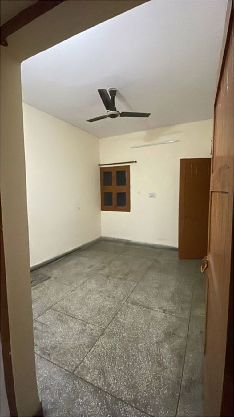 A serene park view from the first floor of this unfurnished apartment in Kalkaji, Delhi, offers a tranquil setting for your new home.