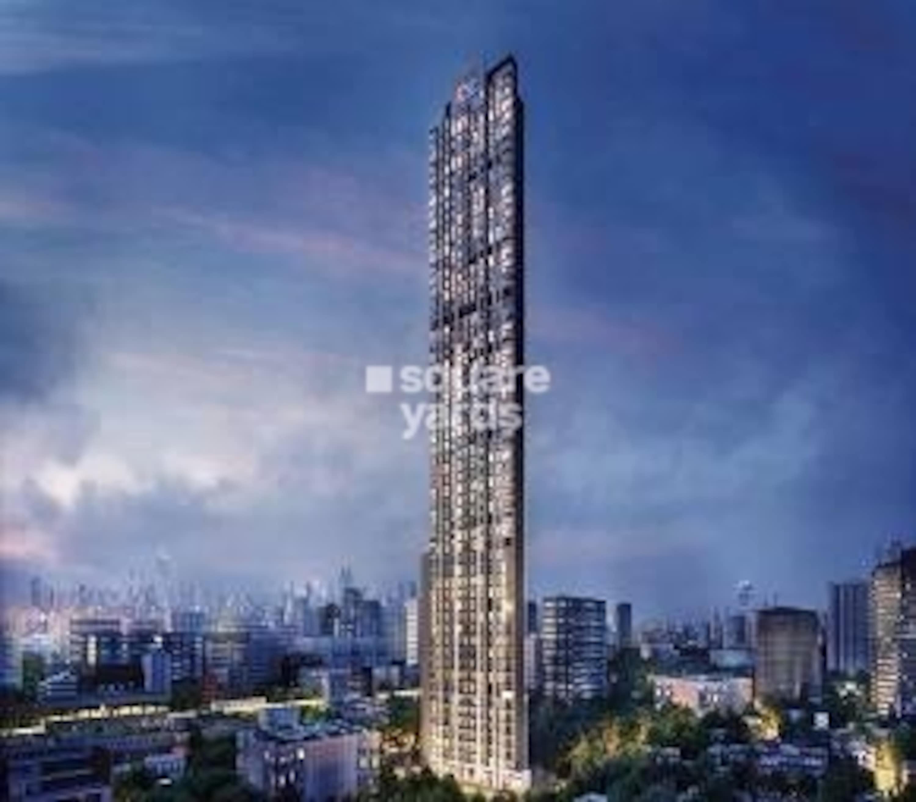 Wake up to a vibrant city view from this unfurnished two-bedroom, two-bathroom apartment on the 36th floor of Ruparel Mumbai XL in Kandivali West, Mumbai.