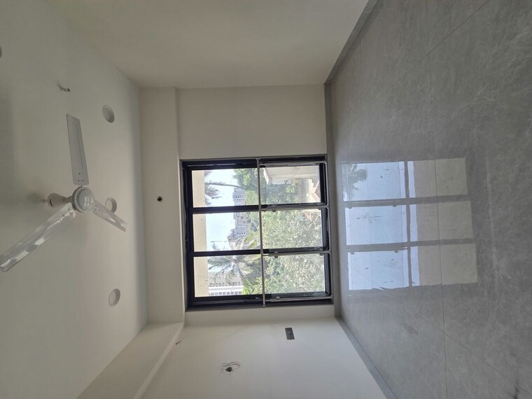 This apartment offers a peaceful park view from its 1st-floor position in Mumbai's Silver Serene CHS society, Goregaon West.