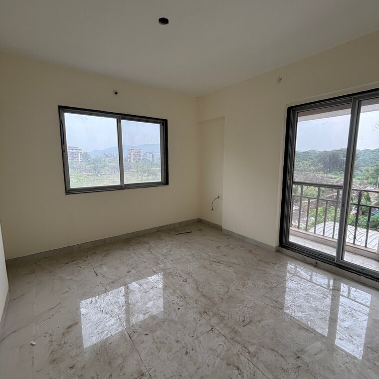 This newly built, unfurnished 2-bedroom, 2-bathroom apartment in Panvel Sector 8, Navi Mumbai, offers a peaceful living experience with a lovely Garden View from its second floor.
