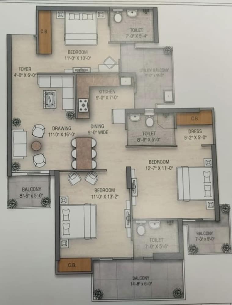3 Bedroom 1650 Sq.Ft. Apartment in Sector 16 Greater Noida Greater Noida