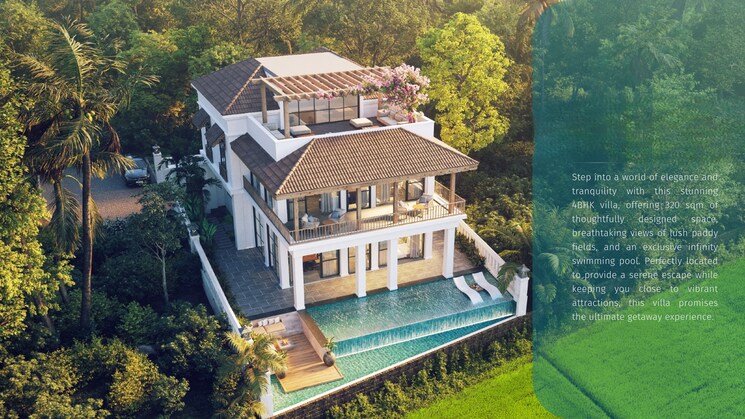 - Step into a world of elegance and tranquility with this stunning 4BHK villa, offering 320 sqm of thoughtfully designed space, breathtaking views of lush paddy fields, and an exclusive infinity swimming pool.