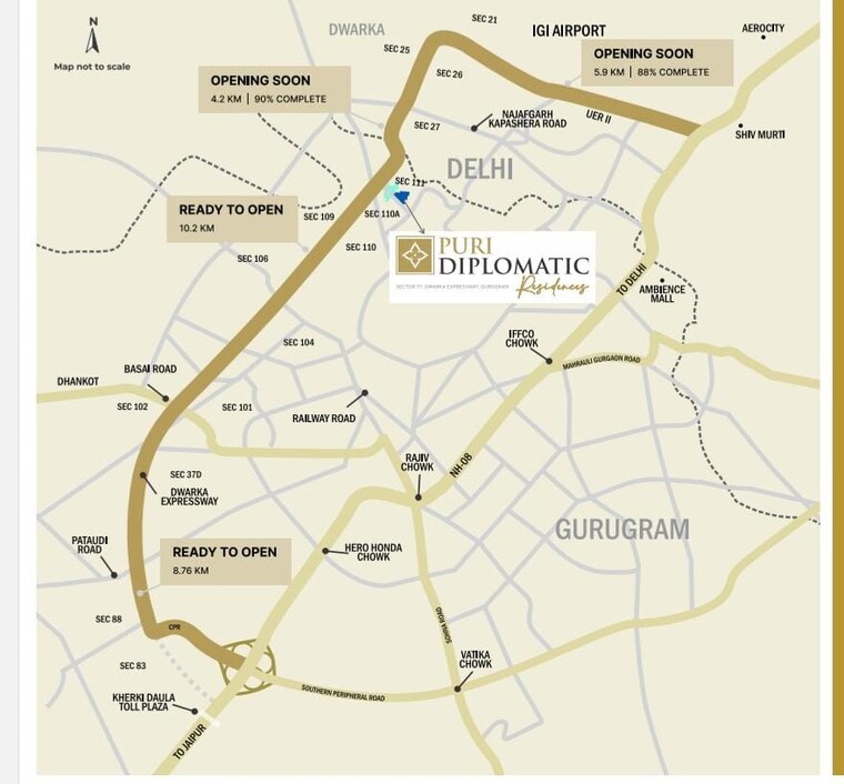 - Situated in Sector 111, Gurgaon, with direct connectivity to Delhi, Gurgaon, Manesar, NH48, and IGI Airport