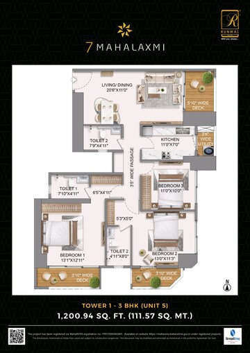 Live your dream life in Mumbai desirable Mahalaxmi area with this stunning unfurnished 3-bedroom, 3-bathroom Flats at Runwal 7 Mahalaxmi, priced at 8.6 crore. This spacious 1099 square feet home is situated on the 44th floor of a 66-story building, offering breathtaking sea views and ensuring excellent ventilation for a healthy living environment.The apartment is Vastu compliant, promoting harmony and positive