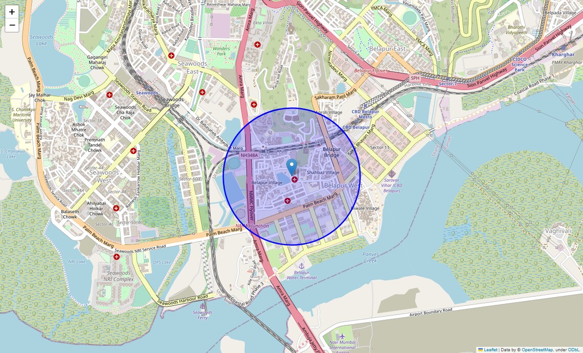 | Belapur - West | 0.42 KM |