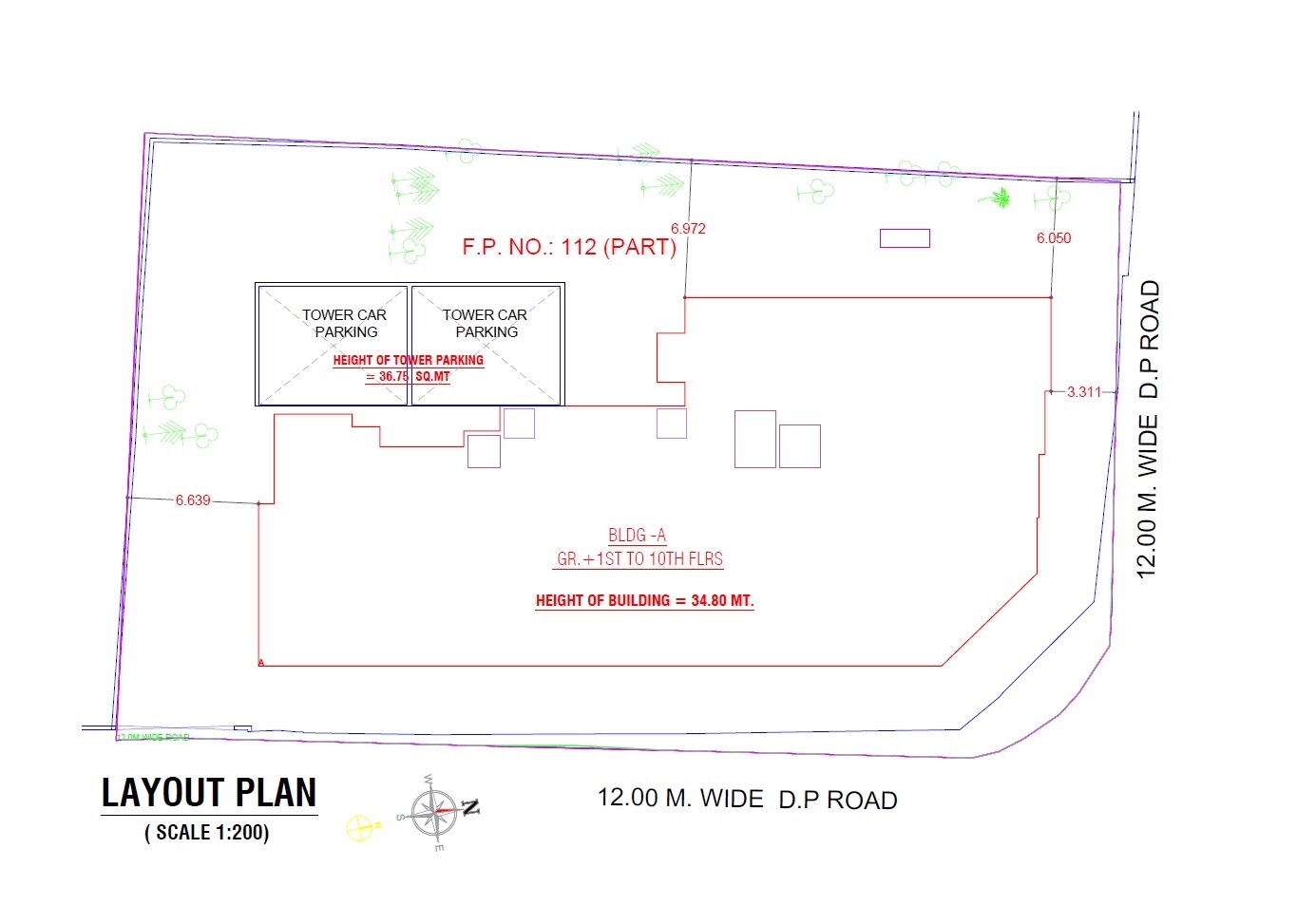 The primary land use for this property, Real Solanki CHS, is for a residential building and dedicated parking facilities. The layout includes Building A, alongside two separate tower car parking structures designed to serve the residents.