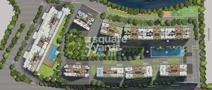 The development is primarily residential, incorporating multiple apartment wings within a thoughtfully designed layout. It features extensive green spaces and landscaped areas, enhancing the living environment. The northern boundary of the property is defined by a serene water body, while a school is situated adjacent to its eastern perimeter.