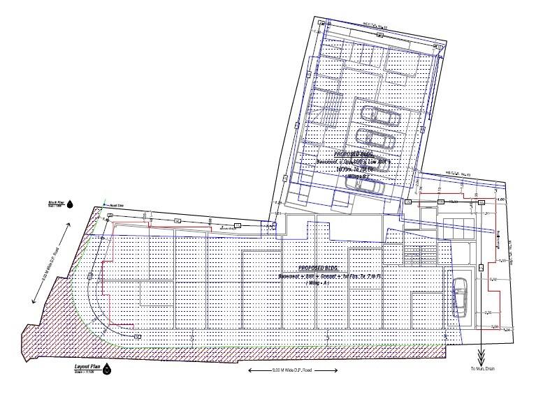 The primary land use is for the proposed building and an extensive vehicle parking area. The dotted regions throughout the plan indicate designated parking spaces, both around and potentially within the proposed building footprint.